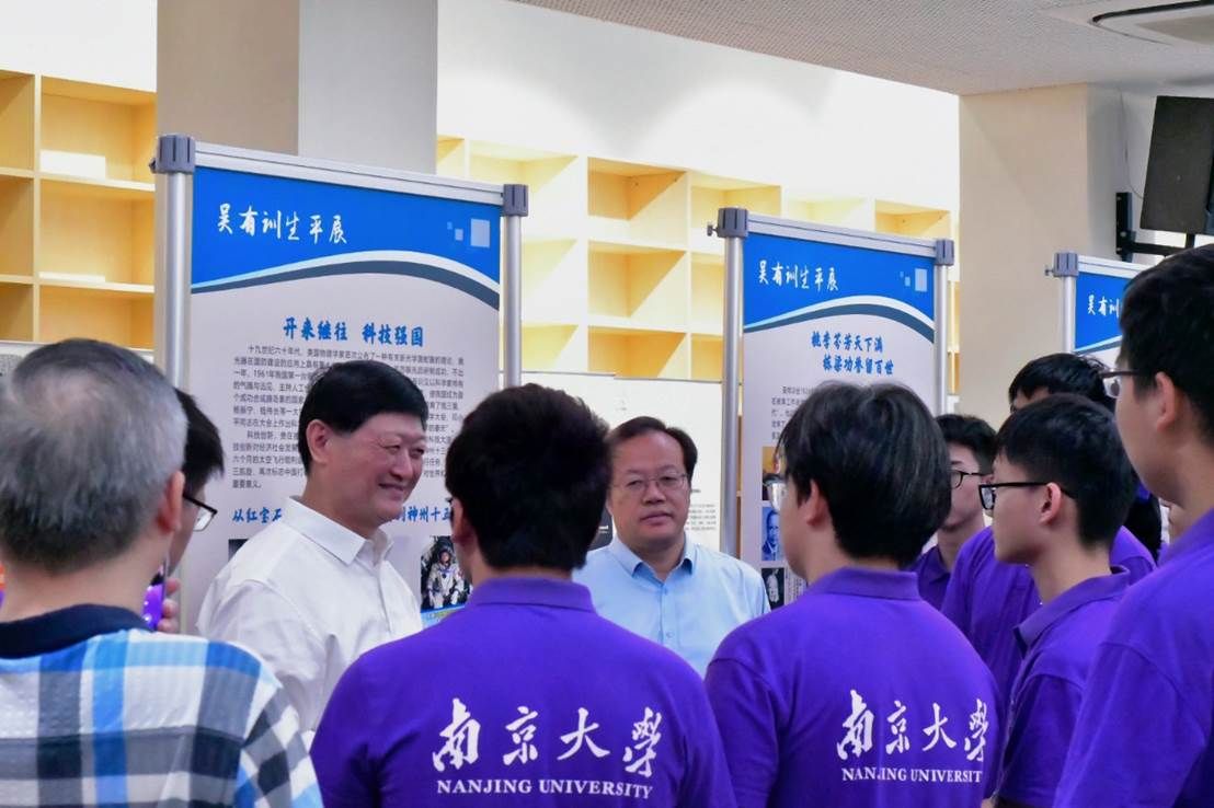 9月28日“善教有恒 作训垂范”——致敬“大先生”系列展之走进吴有训在凯发k8官网鼓楼校区图书馆正式开幕。国家总督学顾问、江苏省政协原副主席、凯发k8官网原党委书记胡金波,新生学院党委书记、常务副院长蒋恩铭,物理学院党委书记鞠艳,物理学院教授杜灵杰,有训书院学生事务中心主任蒲婧翔、学生代表钟立阳等出席开幕式。胡金波和鞠艳共同为开幕式揭牌。图书馆馆长黄贤金主持活动。
