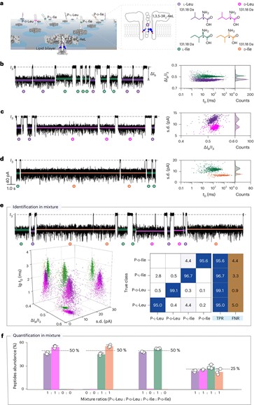 图3 异聚体蛋白质纳米孔道精准识别与定量互为对映异构体和非对应异构体的系列多肽.