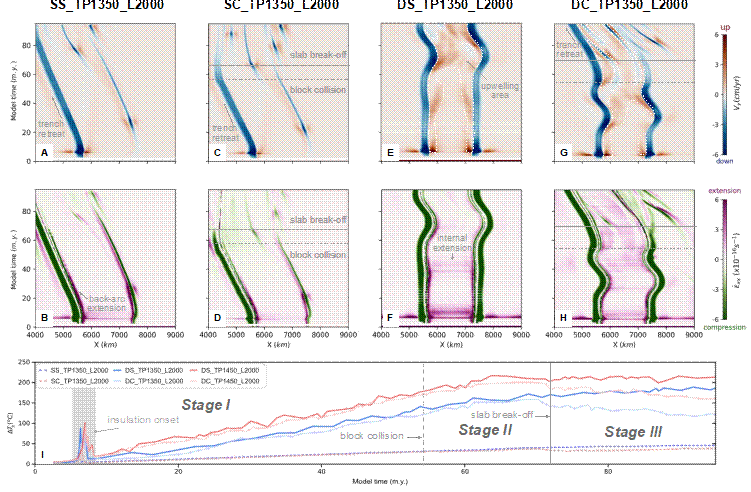 大量研究表明,俯冲带是地球物质循环和能量交换的重要枢纽,对地球深部的演化和浅表的响应有着深远影响。然而,俯冲带往往并非单一,有时会围绕一个陆块或陆块群异向成对出现,构成内倾的“双向俯冲”。复杂俯冲带之间的相互作用对地球深部热和物质演化的影响以前较少受人关注,目前已成为地球科学领域关注的焦点之一。