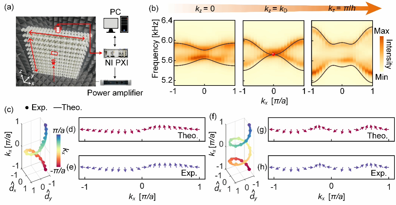 图4. 声学拓扑半金属体拓扑性质的实验测量。