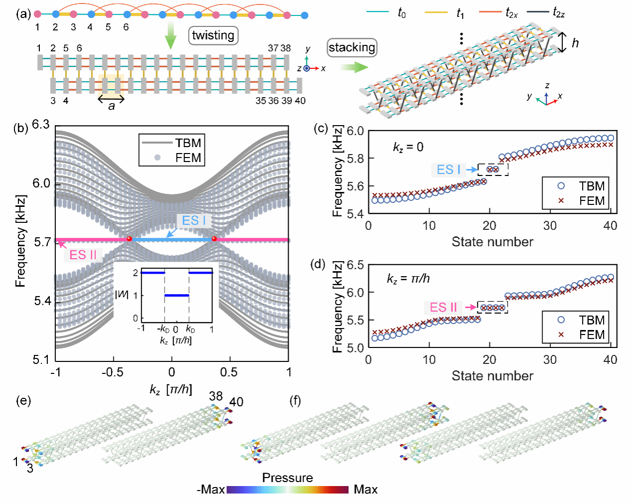 图3. 声学拓扑半金属拓扑性质的仿真计算。