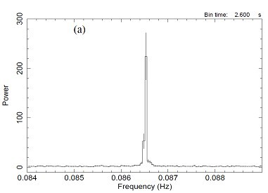 图2:磁星3XMM J185246.6+003317的功率谱显示了非常明显的脉冲周期11.56秒(频率0.0865赫兹)。