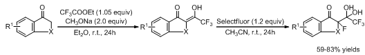 图1. α-氟代的苯并环酮类含有偕二醇结构的分子的制备