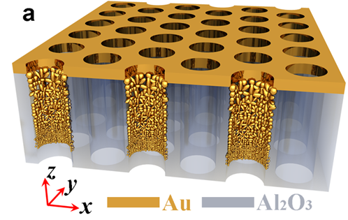高效的太阳能转换与利用被视为满足国家能源重大需求的重要组成部分, 宽带而高效的光吸收是高效率太阳能转换的先决条件;同时微纳结构和微纳光子学过去十年的迅速发展使得人们对于制备基于微纳结构的金属吸收体产生了广泛而强烈的研究兴趣。然而之前的金属吸收体,无论是吸收带宽、吸收效率还是制备工艺离大规模应用都有较远的距离。朱嘉教授课题组创新性地将氧化铝多孔模板与金属纳米颗粒自组装技术结合起来,成功设计并制备了世界上最黑的超宽带、高效金属吸收体——在400nm – 10 mm波段达到99%的光吸收效率,超过目前有文献报道的所有的金属光吸收体材料,可以与之前广泛认为的最黑体-碳纳米管阵列媲美(相较于亚微米级的碳纳米管,金属黑体的有效度不足100纳米)!而其独特的自主装工艺使得金属吸收体的大规模制备与应用成为可能,这对高效率太阳能光热、光电、光催化等诸多应用产生重要的意义。
