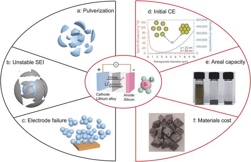随着电子便携设备及电动汽车的快速发展需求,研究并开发高性能的锂离子电池尤为关键。锂离子电池硅负极被认为是下一代最理想的负极材料之一,由于其巨大的储量和超高的理论比容量(4200 mAh/g,相当于现在商业化石墨负极的十倍),成为了科技界、产业界关注的焦点之一。
