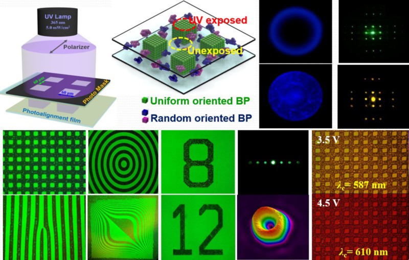 图1. 光控软物质畴工程:蓝相软晶格指向的有序性、微域化和图案化