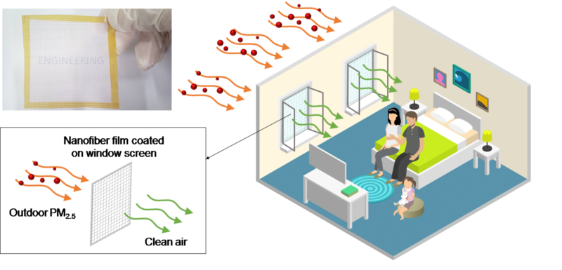 我国正面临严峻的大气污染问题,大气中的PM2.5会随着建筑通风换气进入到室内环境中。人们趋向于关闭外窗以减小室外污染对室内环境的影响。在此情况下,通风换气量会远小于国家标准,无法有效排出室内来源污染物。纳米科学领域新近发展的纳米纤维薄膜可被用作空气过滤介质,对于某些透光性较好的纳米县额外薄膜,可被用作建筑纱窗,用于过滤室外进入室内的PM2.5,降低室内PM2.5浓度水平。