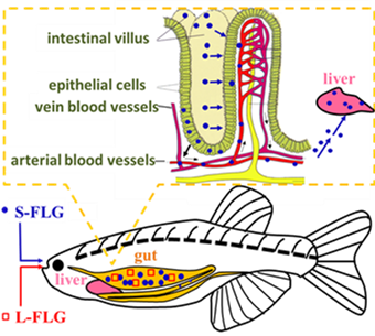 图1. 石墨烯在斑马鱼体内的分布、迁移规律示意图