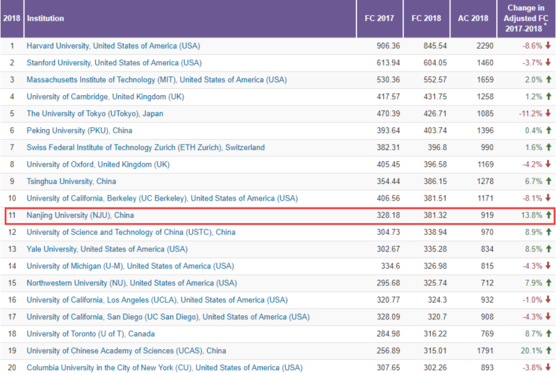 2019年6月20日 —— 今天发布的2019自然指数年度榜单(Nature Index 2019 annual tables)显示,凯发k8官网位居全球高校第11位,中国高校第3位。2017-2018归一化指数(Adjusted FC)增长13.8%(328.18-381.32),在全球前20所高校中增幅第2。此次自然指数年度榜单首次推出经过归一化计算的大学科研机构榜单,考虑了一家机构已发表高质量科研论文的数量在其自然科学论文总产出中所占的比例。归一化计算让不同规模的机构能在同一基础上进行比较。