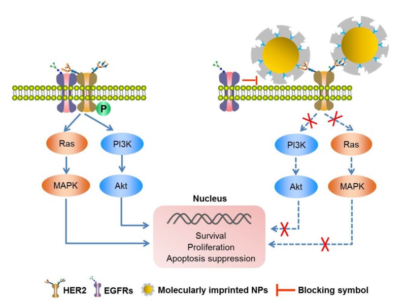 Inhibition of HER2 on tumor cells by molecularly imprinted nanoparticles