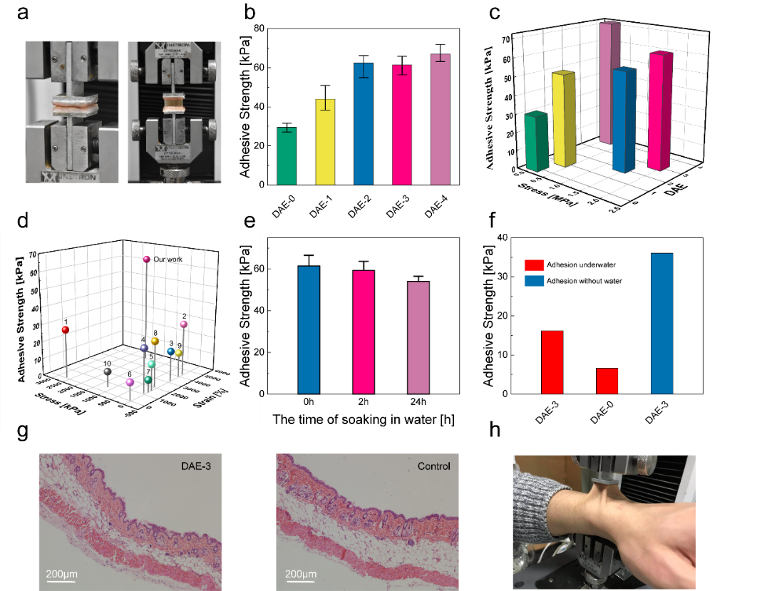 图2:高粘附可拉伸弹性体的粘接性能表征
