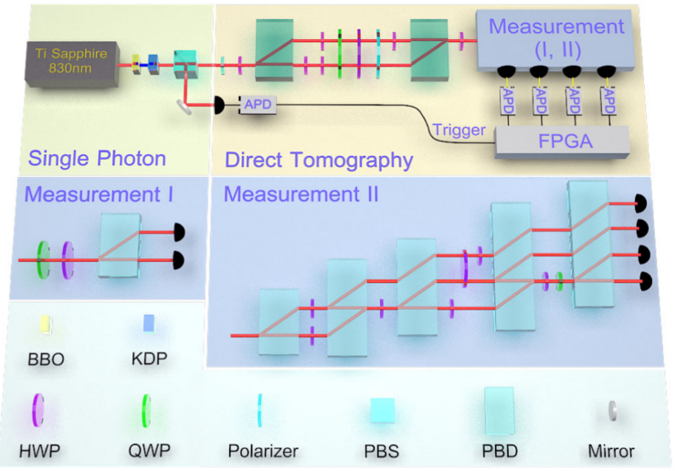 图1. 利用直接量子探测器层析对偏振投影测量和SIC POVM直接表征的实验装置图。