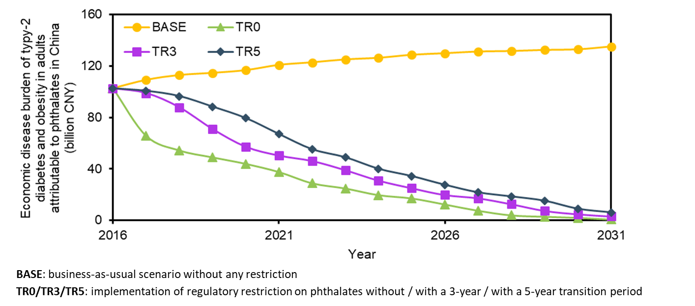 该研究首次定量分析了在我国进行PAE使用限制政策对于PAE污染浓度、人体暴露及疾病负担的长期影响。在我国PAE工业高速发展却缺乏全面的PAE使用限制政策的背景下,为制定有效的PAE使用限制政策提供了理论基础。