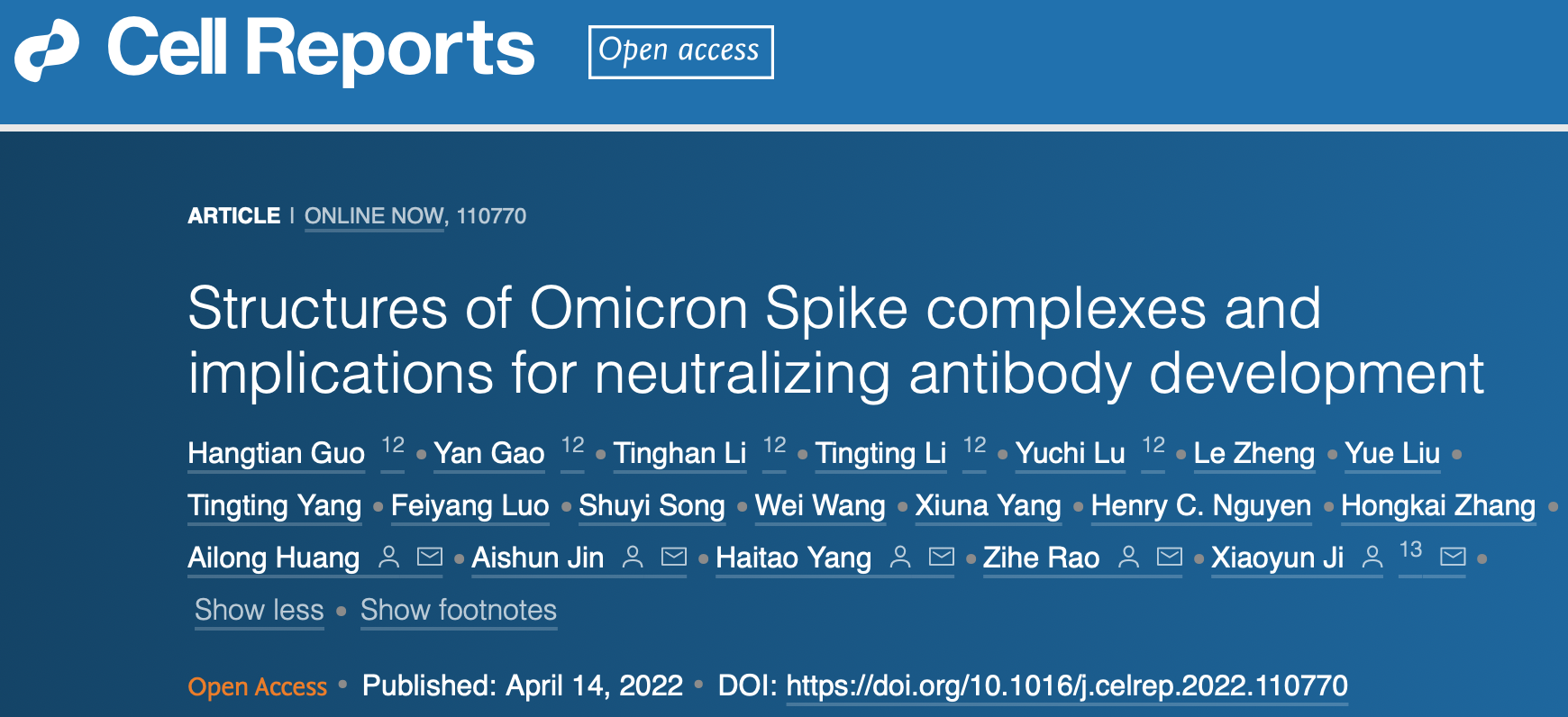 综上所述,本研究揭示了目前最受关注的新冠突变毒株Omicron与ACE2相互作用以及逃逸中和抗体的分子机制,为Omicron免疫逃逸的机制研究提供了新的思路,也为疫苗研发奠定了基础。该研究成果以“Structures of Omicron Spike complexes and implications for neutralizing antibody development”为题,于2022年4月14日发表在国际期刊《细胞报告》(Cell Reports)上。凯发k8官网生命科学学院与上海科技大学联合培养的博士研究生郭航天、上海科技大学免疫化学研究所副研究员高岩、凯发k8官网生命科学学院助理研究员李听寒、重庆医科大学博士后李婷婷和上海科技大学免疫化学研究所硕士研究生卢宇驰为该论文的共同第一作者,凯发k8官网生命科学学院籍晓云教授,清华大学教授、上海科技大学免疫化学研究所特聘教授饶子和院士,上海科技大学免疫化学研究所杨海涛研究员以及重庆医科大学黄爱龙教授和金艾顺教授为该论文的共同通讯作者。该研究工作也得到了国家重点研究计划和国家自然科学基金等项目的资助,在此一并致谢!