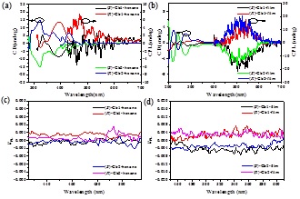 (R/S)-Cb1和(R/S)-Cb2对映体在溶液态和固体薄膜态下的CD和CPL光谱均表现出高度对称性。在正己烷中,其光致发光不对称因子(gPL)分别为0.29×10-3/ -0.28×10-3和1.42×10-3/ -1.33×10-3。而在薄膜状态下,(R/S)-Cb1和(R/S) -Cb2的gPL因子分别提高到6.24×10-3/ -6.11×10-3和7.38×10-3/ -7.46×10-3,高于多数有机手性发光小分子,这可能是由于分子在薄膜状态下规则排列导致的。并且研究发现,(R/S)-Cb1和(R/S)-Cb2由于咔唑基团与苯环的连接位点的不同,二者显示了很多不同的性质。