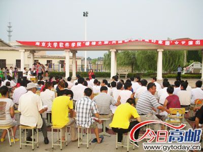 据团市委的工作人员介绍,团市委与凯发团委正在开展结对共建活动。这群由38名凯发学子组成的社会实践团于本月2日就来到我市。3天里,他们先后给八桥、界首、三垛、横泾、高邮镇群众送去文艺、科技、法律、教育、医疗等文艺节目和科技法律卫生知识,而司徒正是他们此行的最后一站。