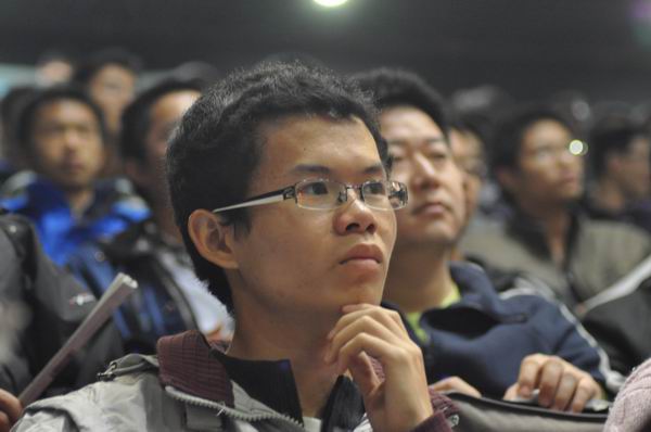 在分享与访谈之外,作为串场的文娱活动也是本次团日的一大亮点。07级电子系孙书远以四个节段行云流水般的笛子演奏获得满堂喝彩。08、09级学生奉上的《最初的梦想》、《倔强》、《爱因为在心中》歌曲串烧使大家仿佛又回到了熟悉的成长路上。