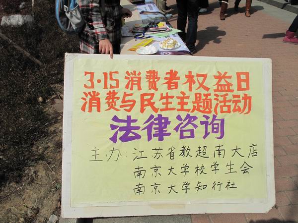 “去年我们开展了消费者维权的系列活动,包括知识竞赛,维权法律讲座,分切蛋糕等等,”许社长说,“今年我们的活动会集中在3?15日这一天。这次活动形式主要包括有奖知识问答,法律援助和分发蛋糕。另外,还会通过展板、海报等形式向大家宣传消费维权活动。我们想要通过这次活动提高同学们的维权意识,增长大家的法制知识。”现场参加活动的同学也纷纷表示:这个活动既通过游戏、有奖竞赛等方式激发了大家参与的积极性,又提高了大家维权的法律意识,很有意义。