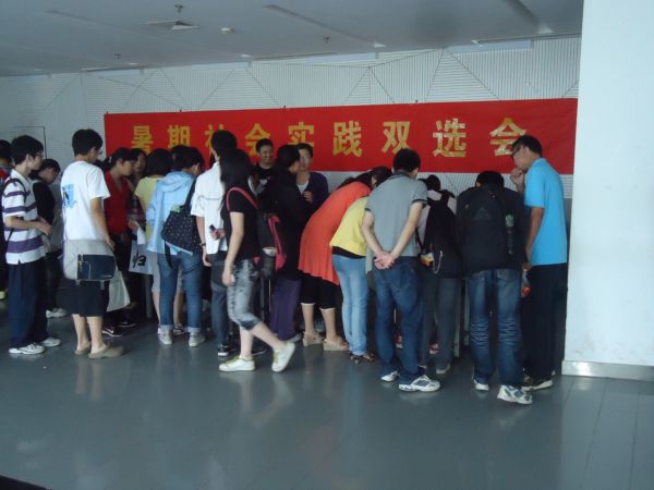 近日,校团委举办2011年度学生暑期社会实践双选会,为各实践团队和全校学生搭建沟通交流平台,帮助各实践团队突破院系专业局限,在更广泛的范围内招募合适的团队成员,也让更多的同学了解暑期实践各团队特点和要求,积极参与到本年度暑期社会实践中来。
