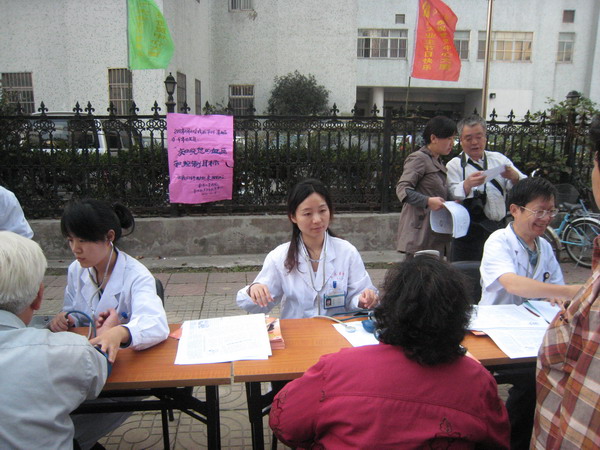 10月8日是第14个全国高血压日。当日下午,校医院联合大方巷社委会在山西南村市民广场开展了主题为“知晓您的血压和控制目标”的大型宣传咨询活动。