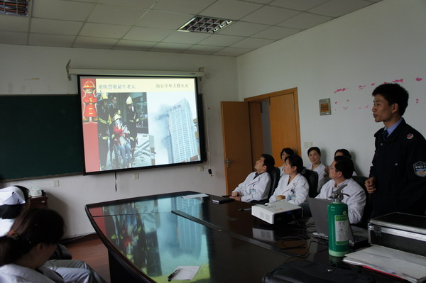 4月20日下午,校医院邀请安居防火教育培训中心魏文志警官在医院五楼会议室对全体医务人员举办了消防安全知识专题讲座。魏警官理论与实际相结合,通过火灾案例的解析,告诉大家火灾的起因、危害,并介绍了常见消防器材的使用,以及简单实用的安全自救方式。
