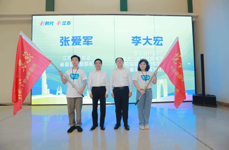 启动仪式上,江苏省委常委、省委宣传部部长张爱军与香港大公文汇传媒集团董事长李大宏分别为苏港学生代表授旗。我校新闻传播学院2021级本科生马卫华代表江苏学生发言。他表示,在本次活动中,苏港两地学子将边行走边观察,边采访边写作,聚焦“一带一路”交汇点建设取得的重大进展和显著成效,感受江苏文化历史和社会成就,并体验当记者的酸甜苦辣,“我们将继续传承范长江精神,扎根实践,用笔和镜头记录新时代江苏风采。”