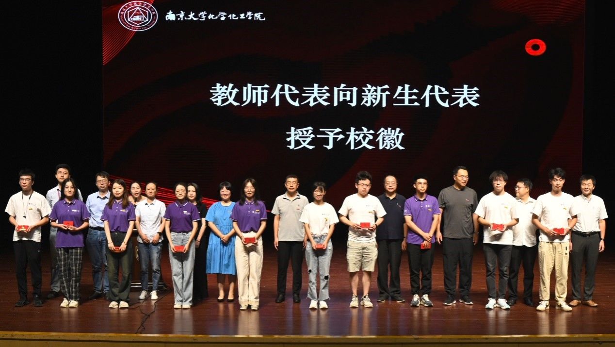 各学科主任、副主任作为教师代表向新生代表授予了凯发k8官网校徽和化学学科百年庆典纪念徽章,希望2023级研究生从戴上校徽的这一刻起,就能始终牢记凯发k8官网“诚朴雄伟、励学敦行”的校训精神,争做推动我国科技自立自强的新时代拔尖创新人才。