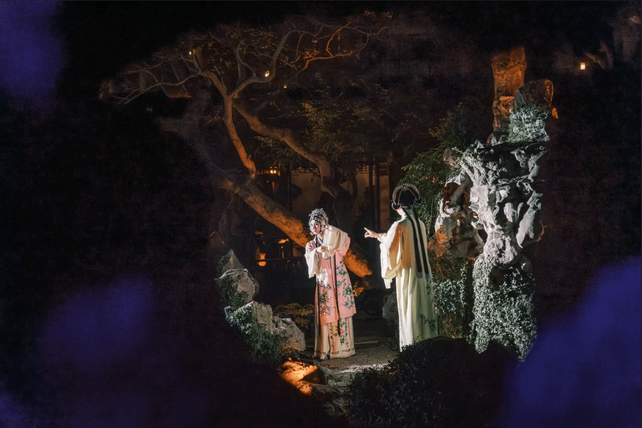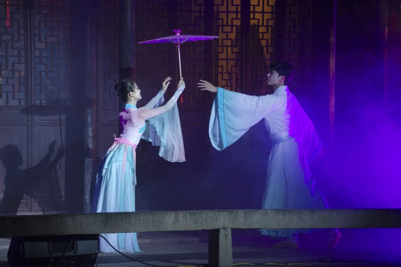 当日晚19:30,“青春时光”青年艺术家展演在同里退思园拉开帷幕。青年艺术家们于建筑、文学、戏剧、书画、哲学、山水自然间,共赴一场如梦如幻的视听盛宴。精妙的舞美让观众沉浸式地感受江南文化的魅力,传统与现代、戏曲与建筑的融合,以青春为题,刻画江南园林新的“灯火阑珊”。青年艺术家作品展演以音乐、舞蹈、戏曲等形式给予了动态的沉浸式体验,呈现出江苏省青年艺术家们在新时代融合新创意的创造潜力。