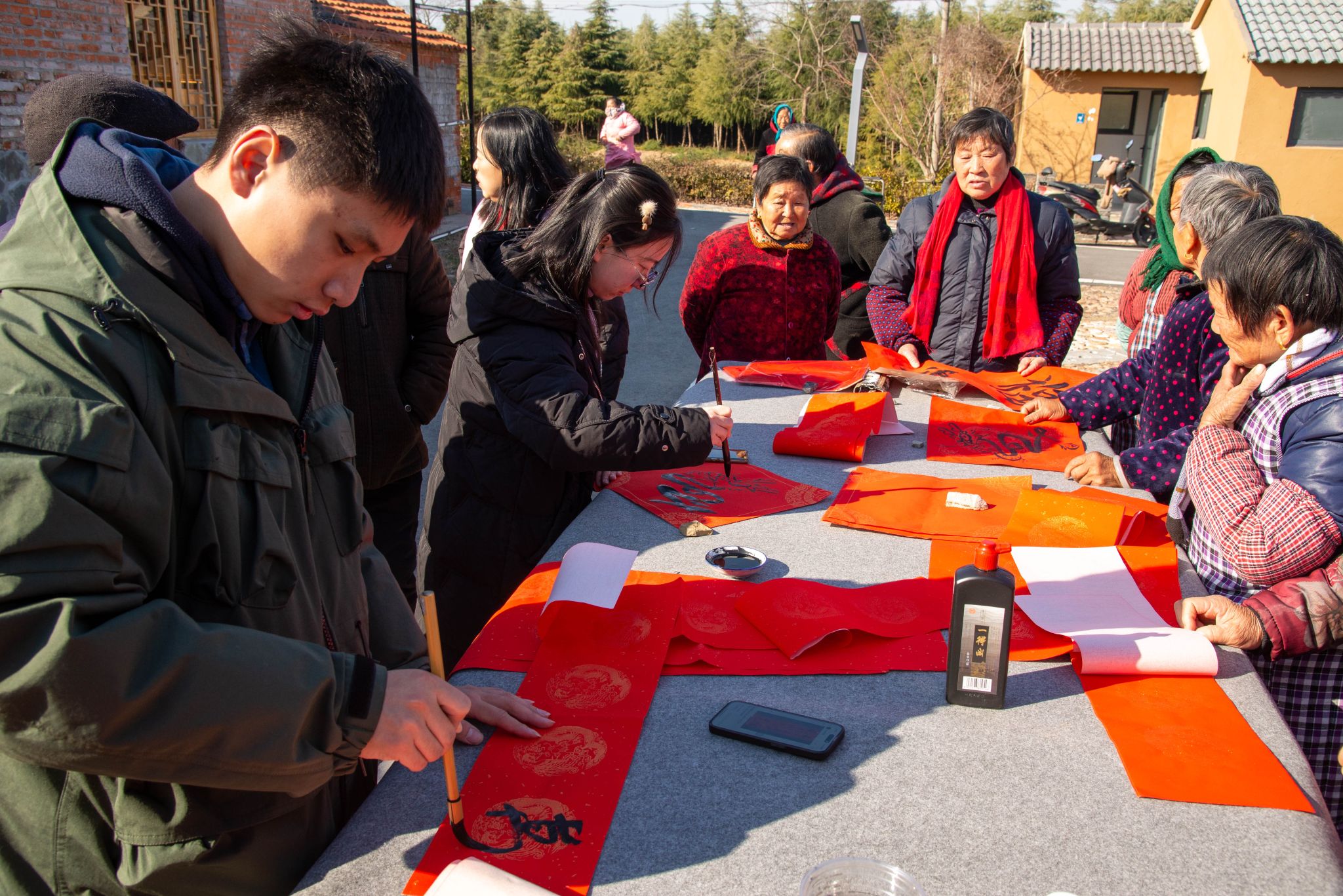 艺术点亮乡村,美育融入人心。2024年1月15日,艺术学院“高雅艺术进社区”活动走进了浦口区汤泉街道新金社区赵湖组,为社区居民带来了一场别开生面的名家紫砂作品展览和热闹非凡的写春联送福字活动。本次活动由凯发k8官网教育部紫砂文化传承基地主办,艺术学院副教授、文化艺术中心副主任杨秀娟老师,凯发k8官网副研究员、教育部紫砂文化传承基地执行负责人袁帅老师和来自凯发k8官网紫砂社团和知恬书画社的硕博研究生马行运、周晋宇、郑辰予、原天羽同学共同参与了本次活动。本次活动也得到了新金社区周芳书记和社区网格员、志愿者的热情接待和配合。