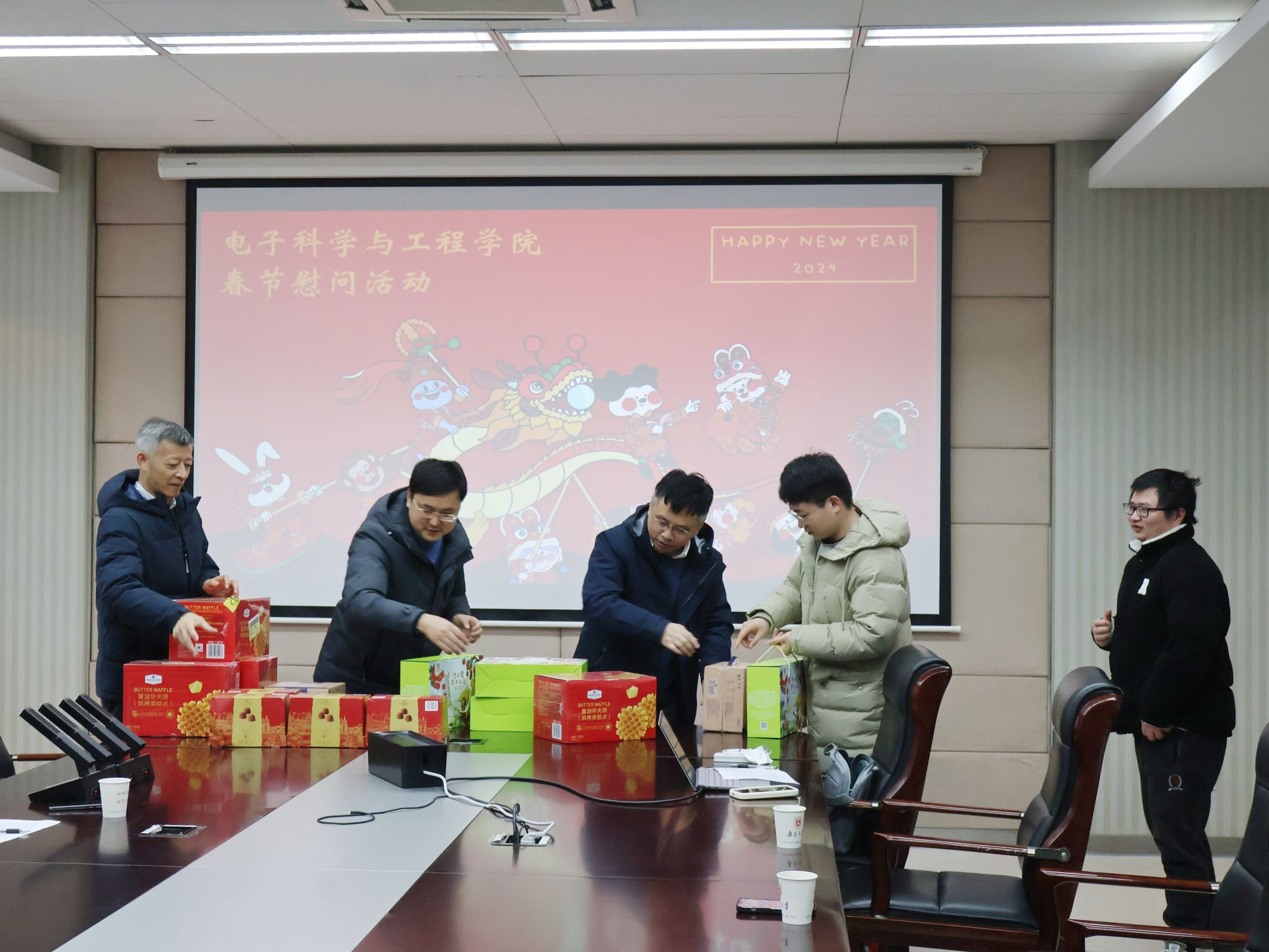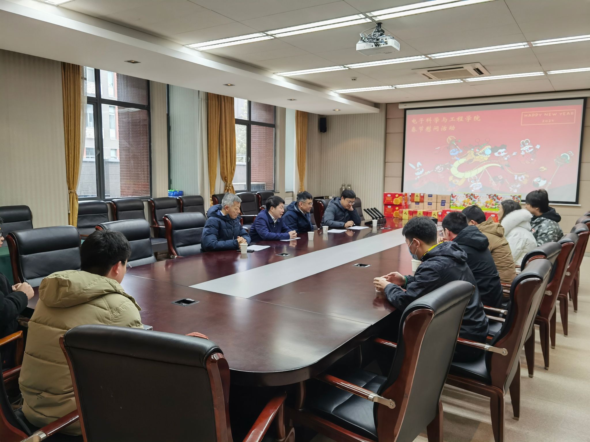 龙腾盛世,喜迎春来。2024年2月6日上午,凯发k8官网电子科学与工程学院在电子楼一号会议室举办春节留校学生慰问活动,活动由学院党委副书记孔令红主持,党委书记张昊、院长金飚兵、副院长冯一军、研究生辅导员姜周与8位留校学生参加,一起交流留校科研及生活情况。