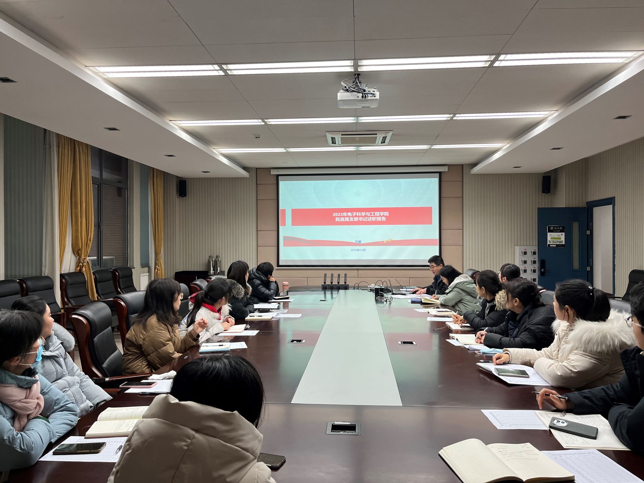 2月23日,电子科学与工程学院行政综合支部在电子楼开展学习习近平总书记重要讲话精神和校党委会议精神专题组织生活。党支部书记王惠主持会议。