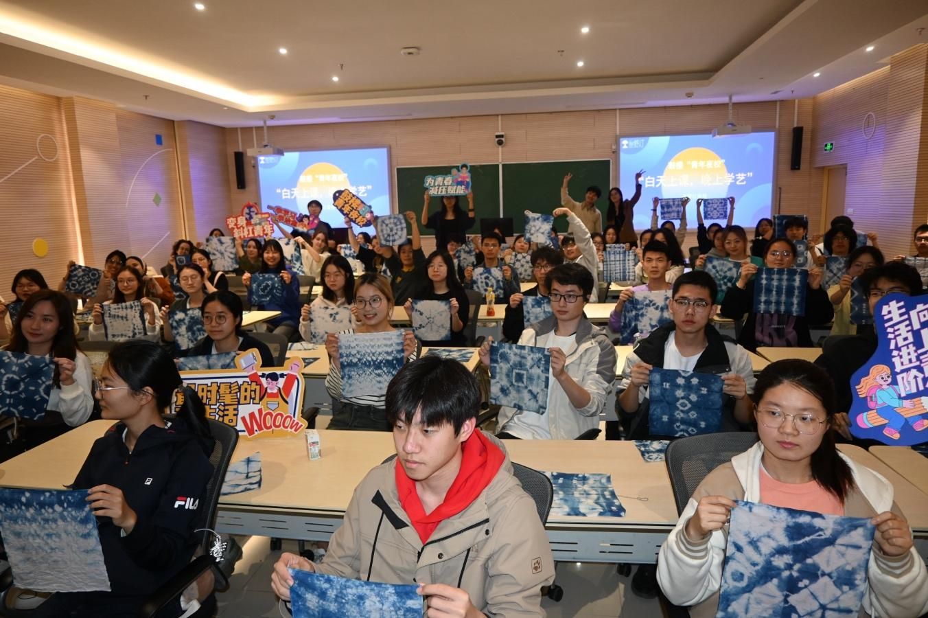 游园会之外,像这样精致有趣、校园内的“沉浸式”非遗体验活动,“文化共融月”里还有很多,以优质的传统文化学习体验点缀同学们的课余生活,让每一次活动报名发布都成为同学们最期待的“校园新鲜事”。同学们在印章篆刻体验中,静心专注于方寸之间,刻划一枚独一无二的专属印章;在戏曲文化体验中,共赏悠扬曲声中的抑扬顿挫、诗情画意;方圆绮错,妙手生花,在扎染蓝染艺术体验里,感受绞扎浸染带来的偶得之美;巧剪妙贴,嵌羽挂翠,用一抹清丽的青绿点缀心情。