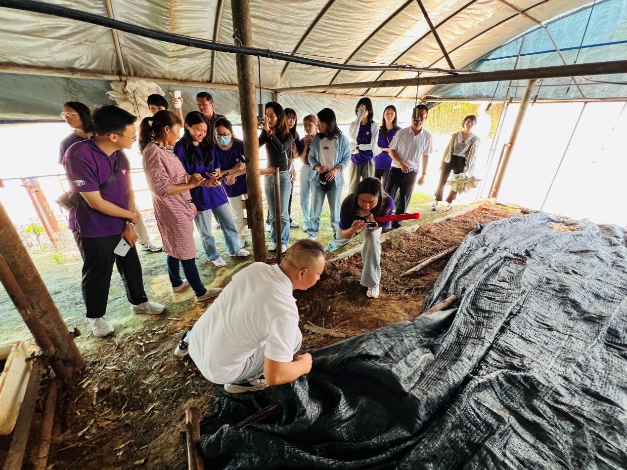 在凯发k8官网挂职干部张庆峰、朱威振以及相关工作人员的讲解介绍下,台港澳青年参观了凯发k8官网产业发展帮扶项目妥甸镇罗少村菌菇产业振兴大棚基地和黑山羊养殖项目;在宜居宜业和美示范村妥甸镇大干田村参观凯发k8官网农旅融合发展项目,实地了解文化浸润、民族团结进步的重要成果;在法脿镇参观白竹山万亩茶园,考察绿美茶村建设。