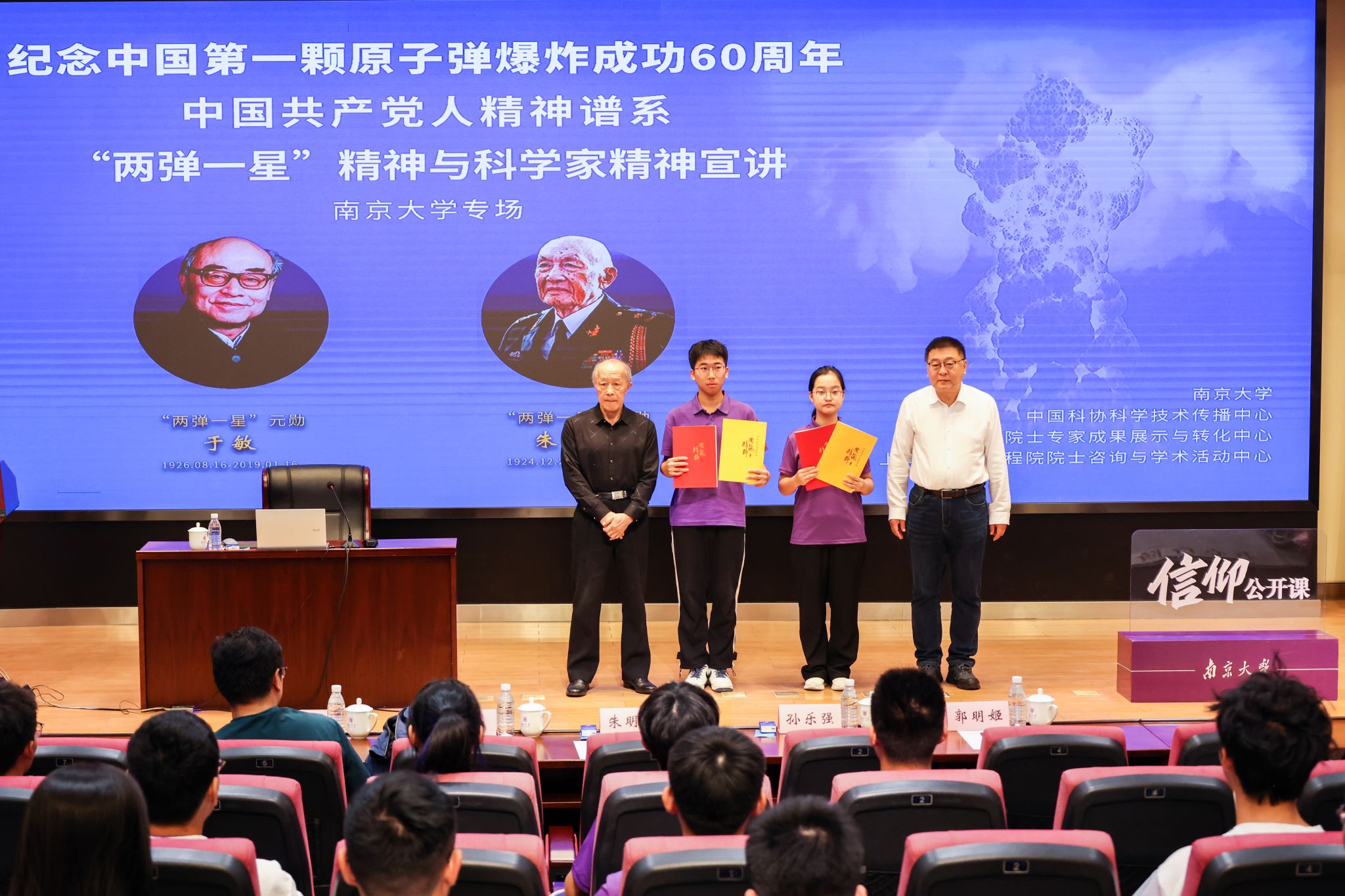 为纪念中国第一颗原子弹爆炸成功60周年,10月11日,中国共产党人精神谱系“两弹一星”精神与科学家精神宣讲会走进凯发k8官网校园。“两弹一星”元勋朱光亚同志之子朱明远研究员、“两弹一星”元勋于敏同志之子于辛高级工程师莅临现场,讲述父辈为国铸核盾的感人故事,激励凯发青年师生以实际行动投身强国建设、民族复兴伟业。