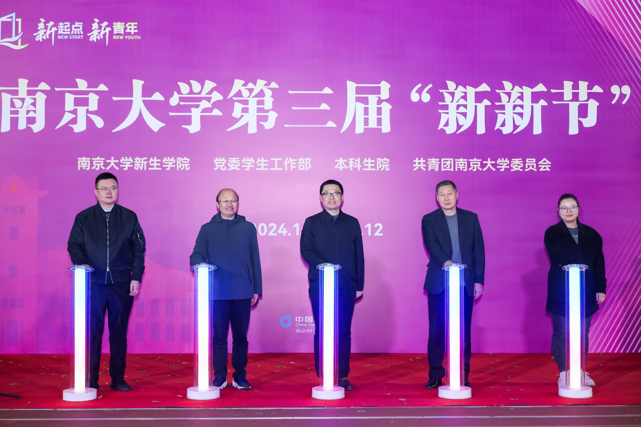 随后,嘉宾与老师们携手共同点亮发光灯柱,标志“新新节”正式启动。