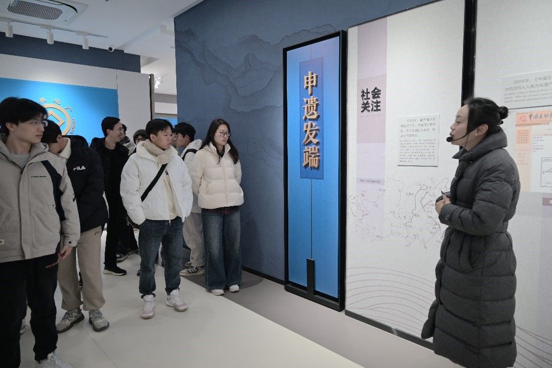 2024年恰逢中国大运河申遗成功十周年,同学们来到中国大运河申遗展示馆,在讲解员的带领下,参观展馆内“国家行动”“江苏实践”“扬州担当”三个主题展区,深入了解这项由扬州牵头、35座城市共同参与的中国大运河联合申遗项目。从生态治理的显著成效到文化创新的璀璨成果,从考古发掘的珍贵发现到文旅融合的生动实践,一件件珍贵的文物、一幅幅生动的图片、一段段详实的文字介绍,同学们深刻感受到了大运河作为中华民族宝贵文化遗产的独特魅力,以及党和国家在文化遗产保护方面所做出的巨大努力。