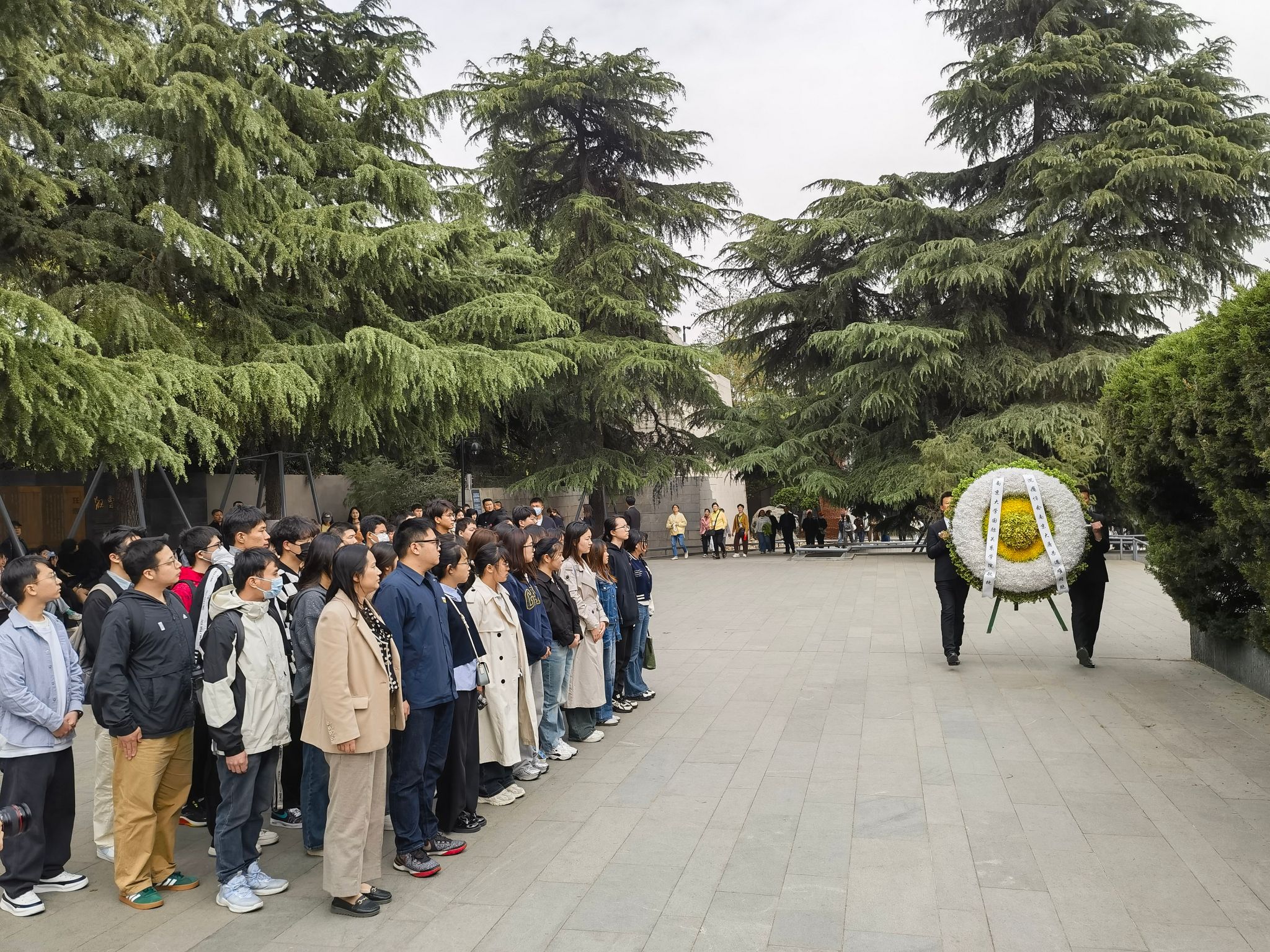 国际关系学院师生首先来到纪念馆悼念广场举行悼念仪式,向遇难同胞敬献花圈,全体肃立默哀,现场氛围庄严肃穆。