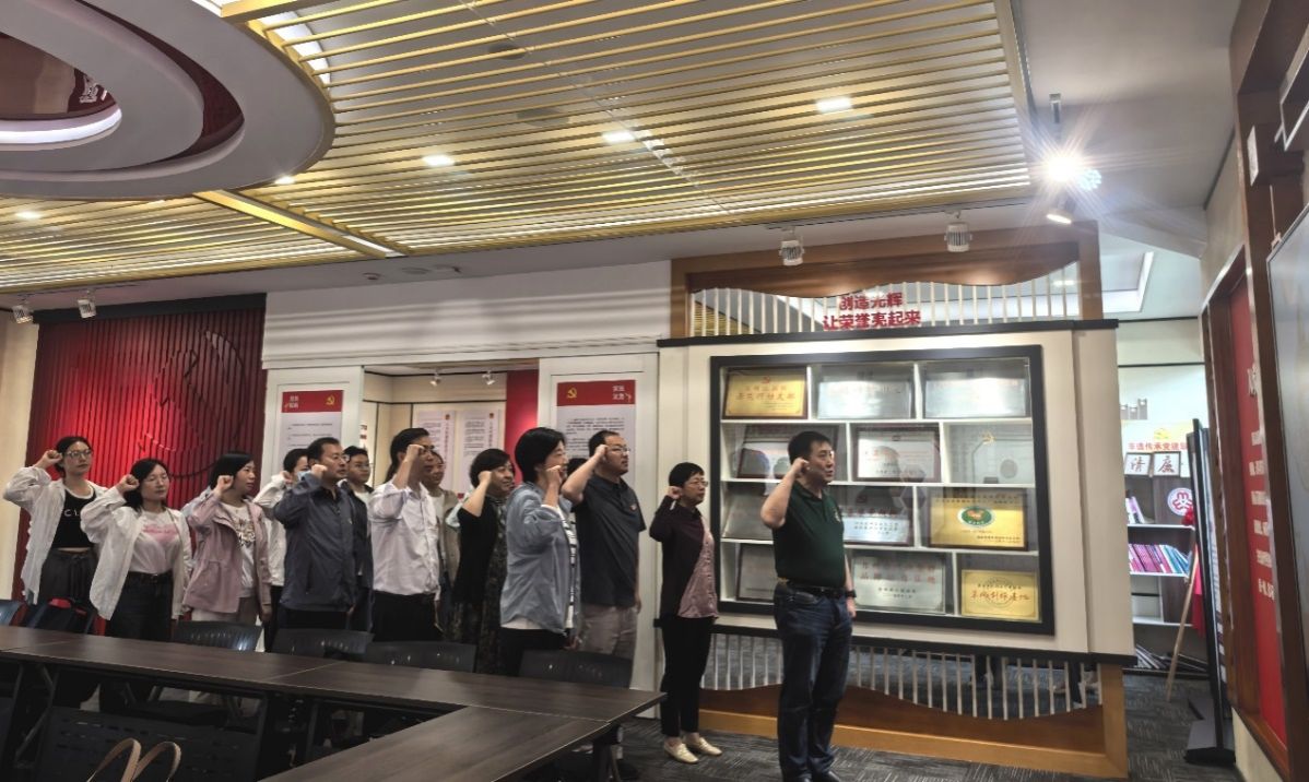 4月19日上午,党员们参观了中国刺绣艺术馆,深入了解中国传统刺绣艺术的历史与文化,感受中华文化博大精深以及中华文化伟大传承力。正如习近平总书记在2023年7月调研苏州时讲道:“中华文化的传承力有多强,通过这个苏绣就可以看出来。像这样的功夫,充分体现出中国人的韧性、耐心和定力,这是中华民族精神的一部分。”党员们在苏绣大师们的作品中深切感受到博大精深的中华文化精神和精益求精的工匠精神,在党龄最长党员的带领下于展馆内再次重温入党誓词,进一步明确了身为党员所肩负的使命和重任。