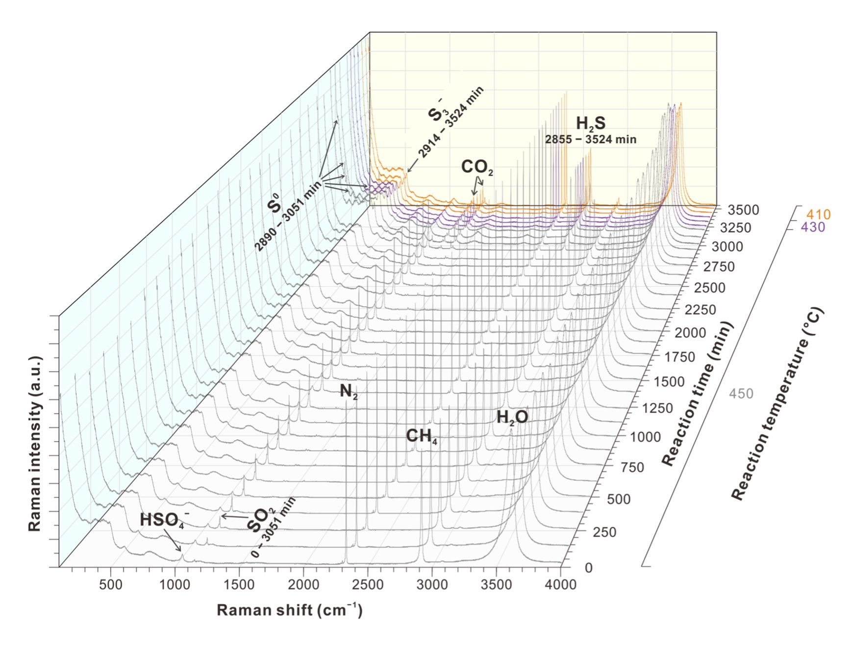 This contribution, entitled by “Reaction pathway, mechanism and kinetics of thermochemical sulfate reduction: insights from in situ Raman spectroscopic observations at elevated temperatures and pressures” was published in Geochimica et Cosmochimica Acta (381: 25-42; https://www.sciencedirect.com/science/article/pii/S0016703724003752). The first author is Mr Qian Wan (PhD candidate), and the corresponding author is Professor Xiaolin Wang. The coauthors include Professor Wenxuan Hu, Associate Research Fellow Ye Wan and Research Fellow I-Ming Chou from the Institute of Deep-sea Science and Engineering, Chinese Academy of Sciences. This research is mainly supported by the National Key Research and Development Program of China (2022YFF0800403), the National Natural Science Foundation of China (42173038), the Research Funds for the Frontiers Science Center for Critical Earth Material Cycling (Nanjing University).