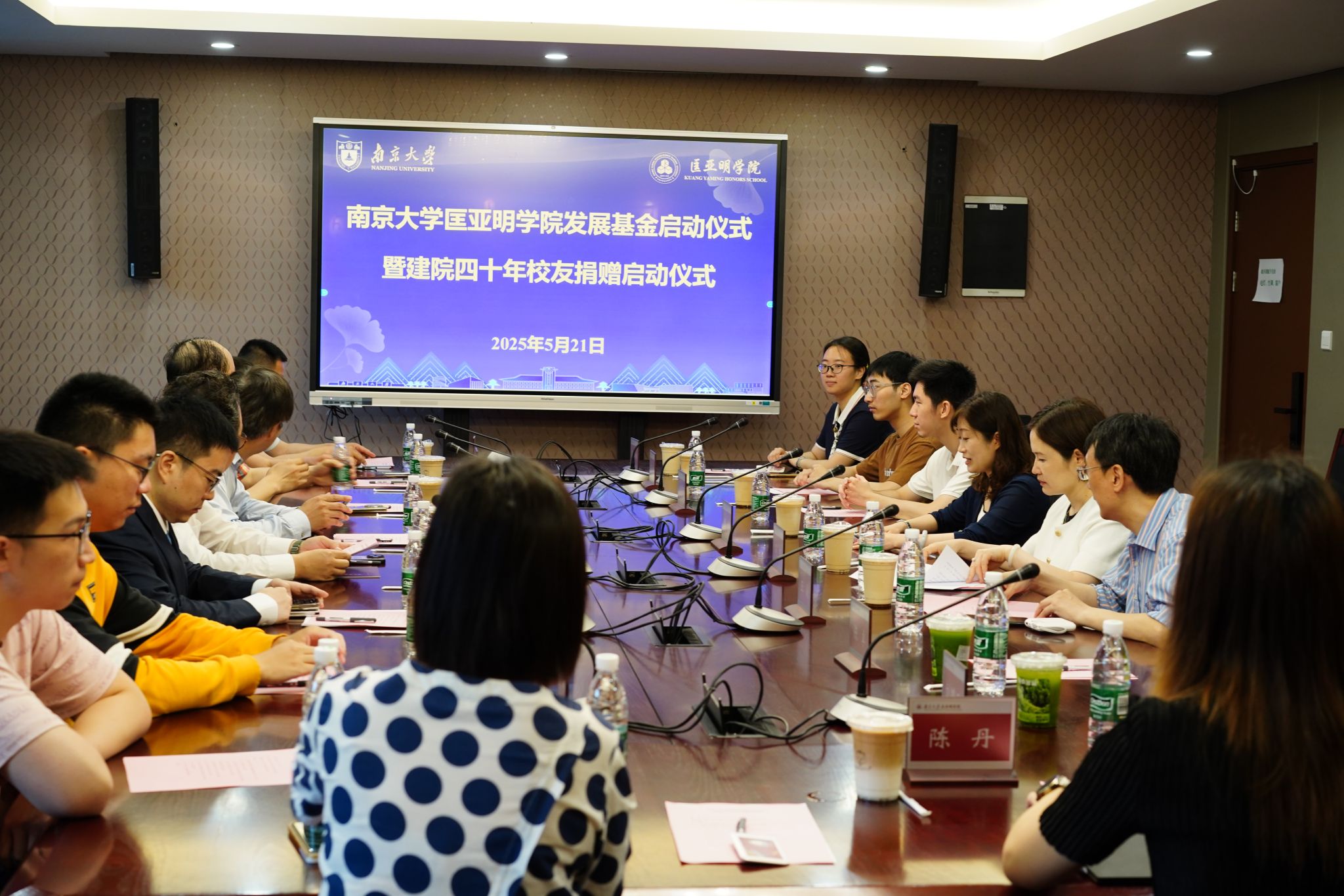 On May 21, the inauguration ceremony for Kuang Yaming Honors School Development Fund and the launch of the 40th Anniversary Alumni Donation Campaign was held at Kuang Yaming Honors School, Nanjing University. Attendees included Feng Fan, Director of NJU Alumni Affairs and Development Office; alumni Lu Zhigang, Hong Hao, Hu Wei, Zheng Gang, the parents of alumnus Jiang Wenwei; Wang Jun, Dean of the Undergraduate School, Executive Dean of the College of First-Year Students, Nanjing University, and Dean of Kuang Yaming Honors School, along with faculty and student representatives from the school. The event was hosted by Zhou Yuan, Secretary of the Party Committee of Kuang Yaming Honors School.