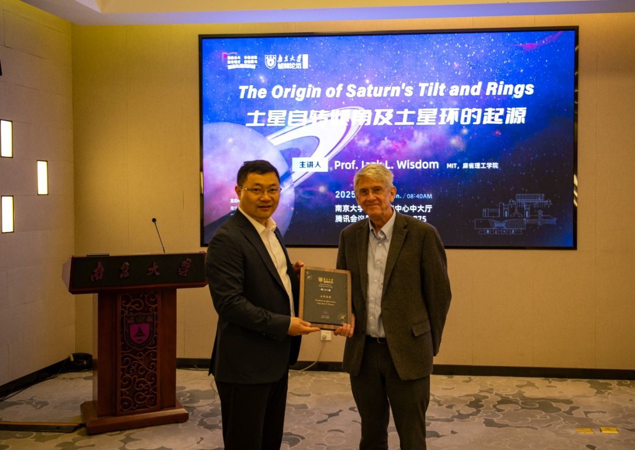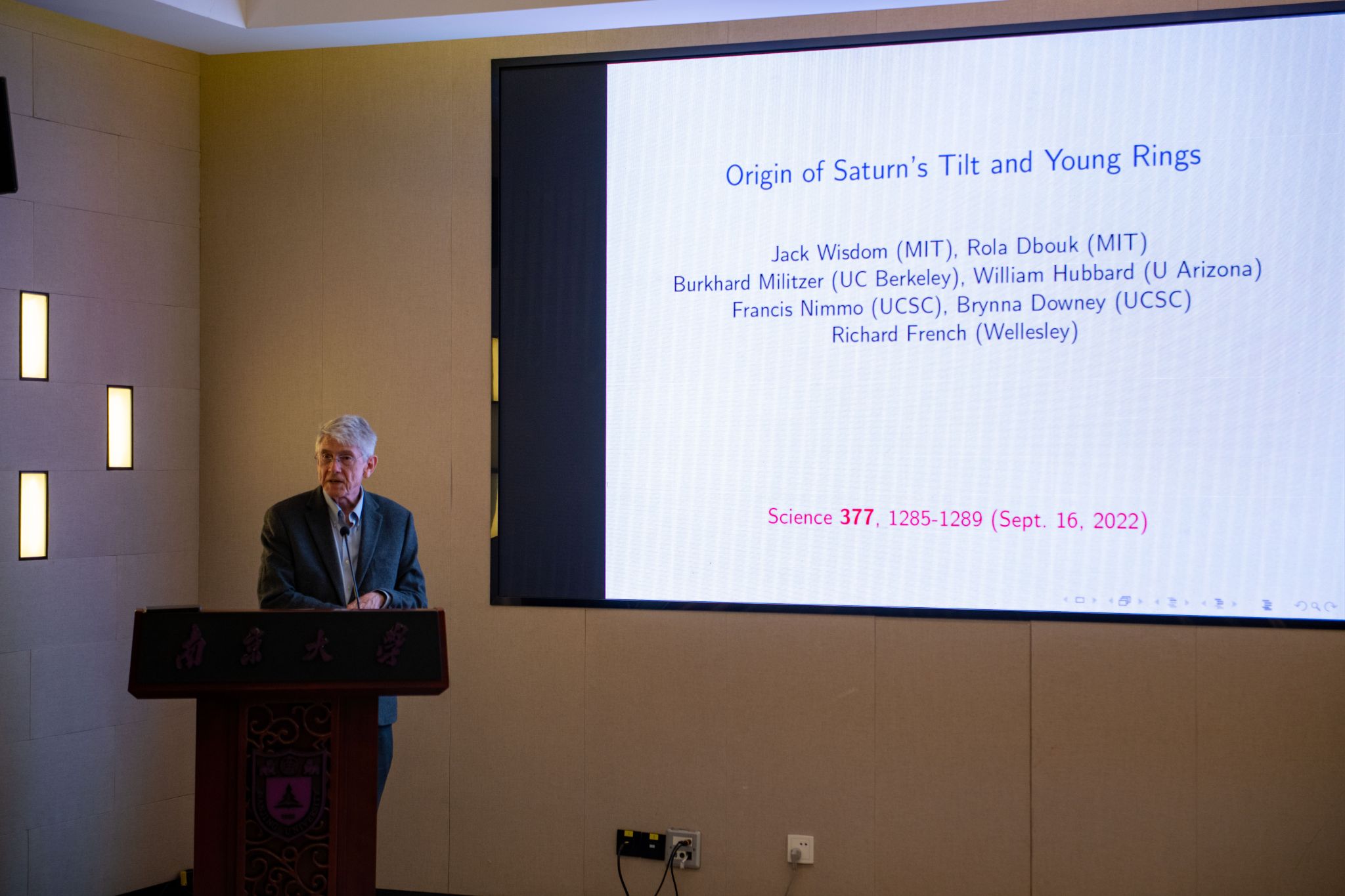 On May 19th, the 22nd Academic Lecture of Xianlin Forum was held. Jack Wisdom, Professor of Massachusetts Institute of Technology, Member of the National Academy of Sciences (NAS) and the American Academy of Arts and Sciences (AAAS), United States, gave an academic lecture titled "Origin of Saturn's Tilt and Young Rings". Professor Zheng Hairong, Vice President of Nanjing University, and Academician of the Chinese Academy of Sciences (CAS), attended the forum.