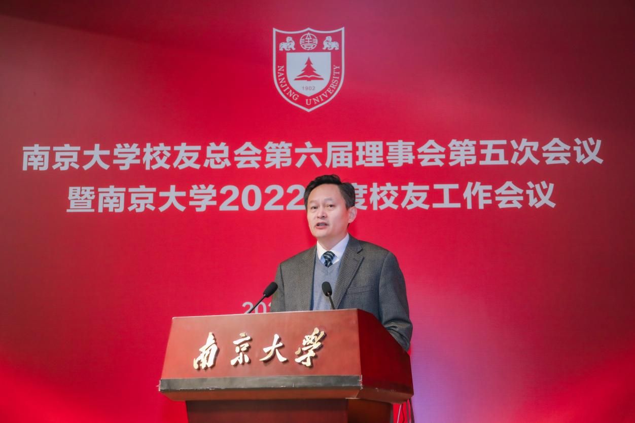 On the morning of January 7, 2023, the Fifth Meeting of the Sixth Council of Alumni Association of NJU and the 2022 NJU Alumni Work Conference met in the Lecture Hall of Duxia Library at Xianlin Campus. Present at the meeting were Tan Zhemin, Academician of the CAS and Vice President of NJU, Gong Yue, Standing member of the CPC NJU Committee and Director of Organization Department, executive directors of the Association including Hang Zhuhong, Tao Wei, Huang Jianliang, Zhang Zhihong, Lu Chaoyang, Zheng Gang, Yin Sanhong, Yin Jiankang, Jia Xyudong, some members of the Association, representatives from other alumni organizations as well as heads of relevant NJU departments. The meeting was chaired by Zou Yajun, Standing Member of the CPC NJU Committee and Vice President of NJU.