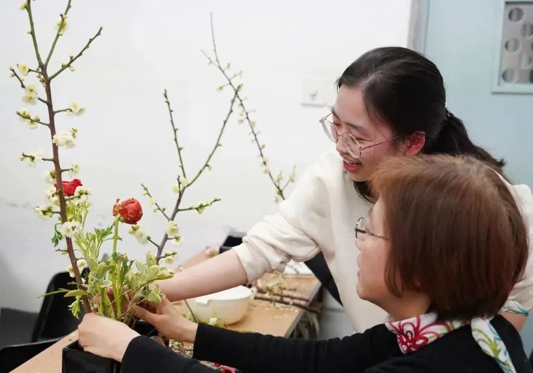 From the meticulous process of selecting flowers to the precise pruning of branches and leaves, to envisioning the perfect layout to the hands-on creation, every step of flower arrangement demands unwavering focus and attention. In the tranquil embrace of spring, the students engage in a profound aesthetic dialogue with the flowers and plants, allowing their creativity to intertwine with nature's beauty.