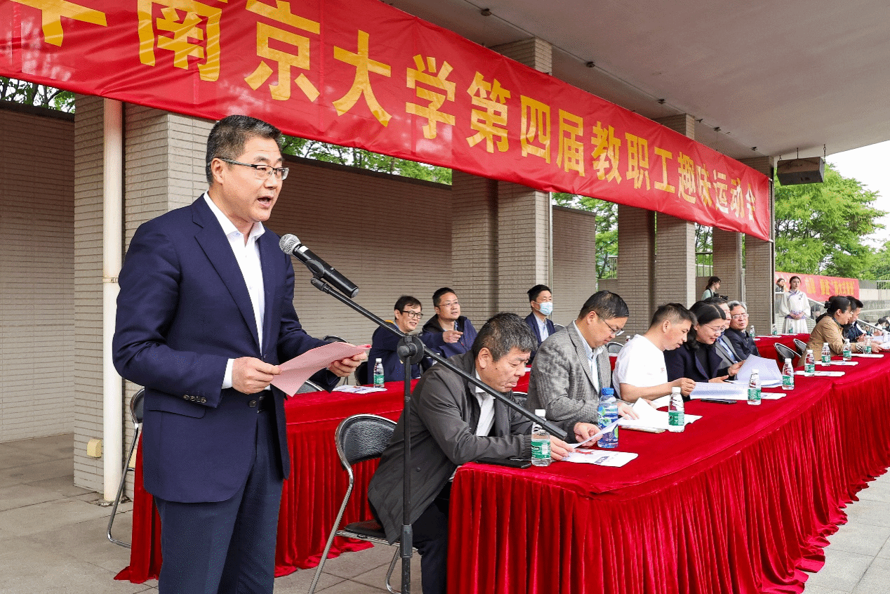 In his speech, Xue Hailin mentioned that NJU has always prioritized the physical and mental well-being of our faculty and staff and organized various sports events that are enjoyed by everyone. It advocates the concept of being healthy and joyful. NJU Labor Union utilized group associations and promptly organized activities such as ping-pong, badminton, exercise training, and fitness walking. These activities not only foster a health-conscious mindset and improve physical fitness of the faculty and staff but also strengthened their unity and cooperation. Xue expressed his hope that everyone would commit to a one-hour daily exercise routine, leading a fulfilling and happy life.