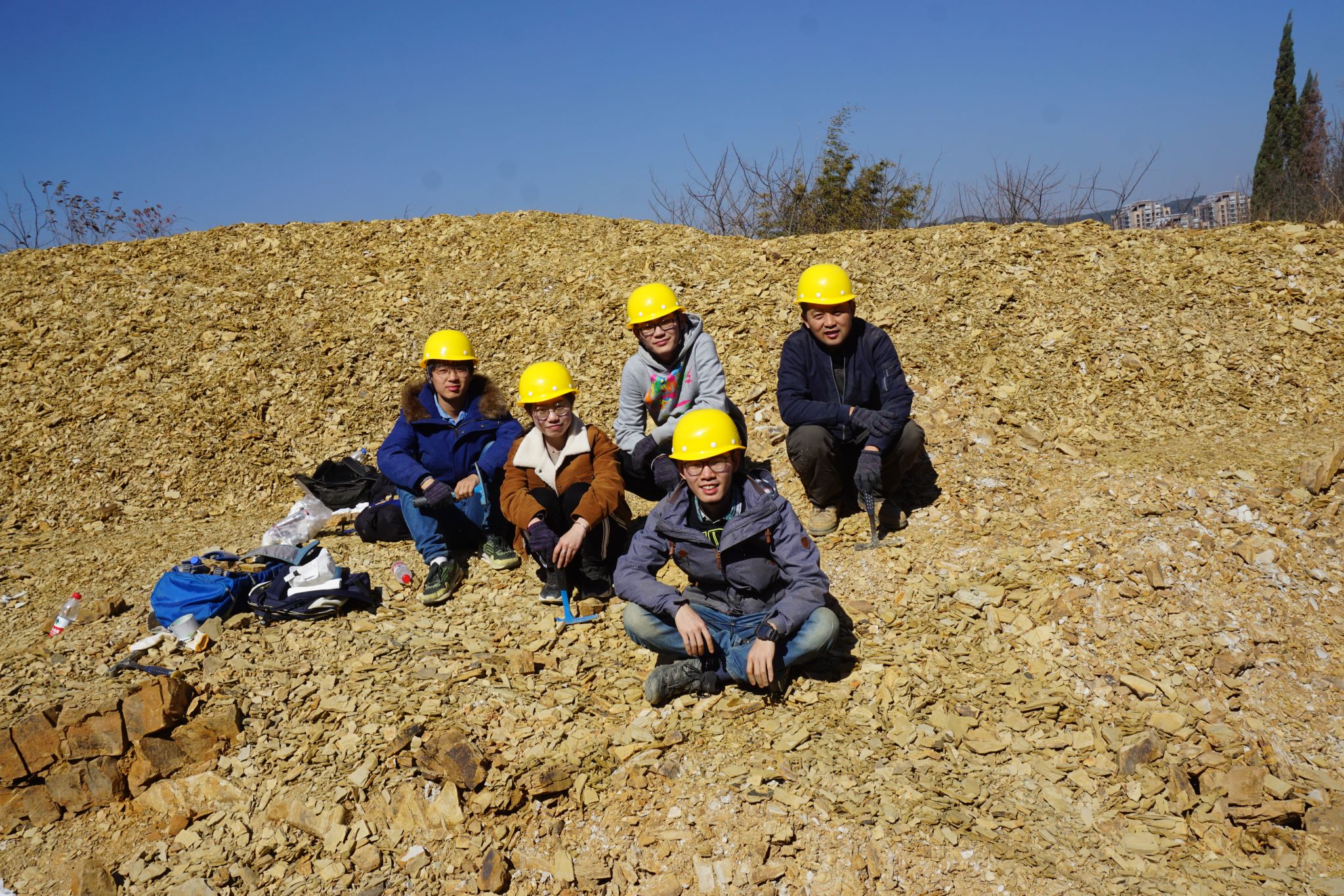 Baoyu Jiang (upper right) and his team on a site of the Maotianshan Shale.