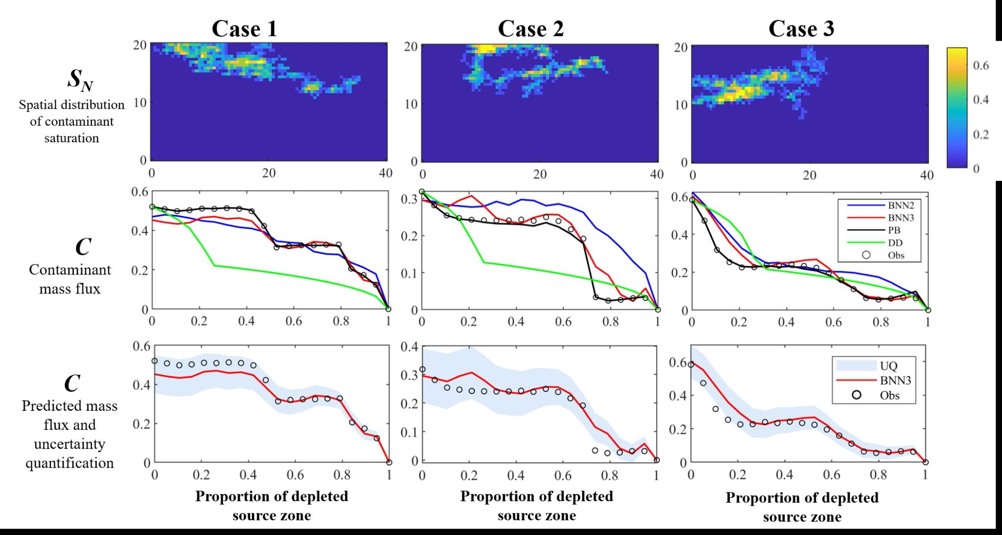 [1] Kang, X., Kokkinaki, A., Shi, X., Lee, J., Guo, Z., Ni, L., Wu, J. (2024). Modeling Upscaled Mass Discharge From Complex DNAPL Source Zones Using a Bayesian Neural Network: Prediction Accuracy, Uncertainty Quantification and Source Zone Feature Importance. Water Resources Research, 60, e2023WR036864. https://doi.org/10.1029/2023WR036864