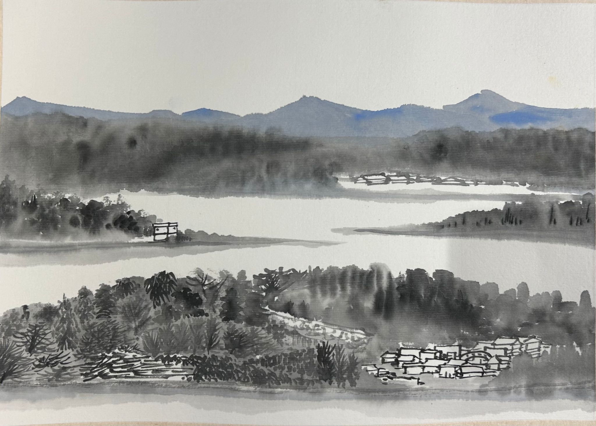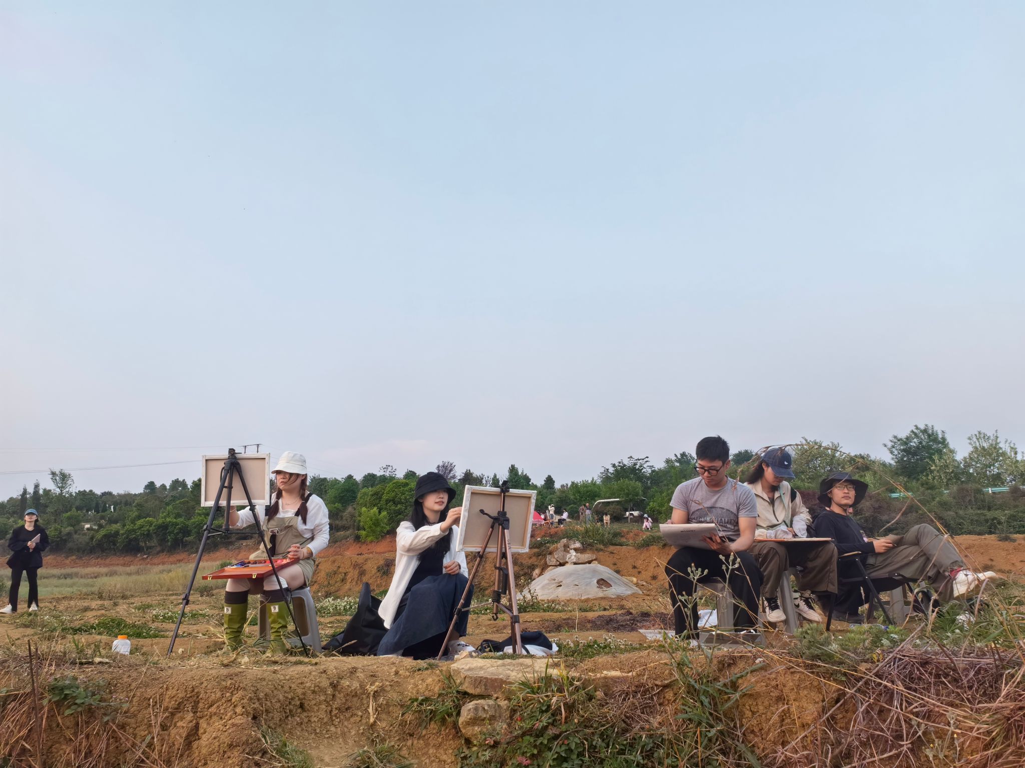 In mid-April, students and faculty from Nanjing University School of Arts traveled to You'er Village in Qingzhen City, Guiyang, Guizhou Province, for a week-long field study. The students are from the Oil Painting, Chinese Painting, and Sculpture programs. You'er Village boasts its special geographical features and picturesque landscapes. It has been designated as one of Guizhou's fourth batch of "Key Tourist Villages," and serves as a field study base for the Nanjing University School of Arts.