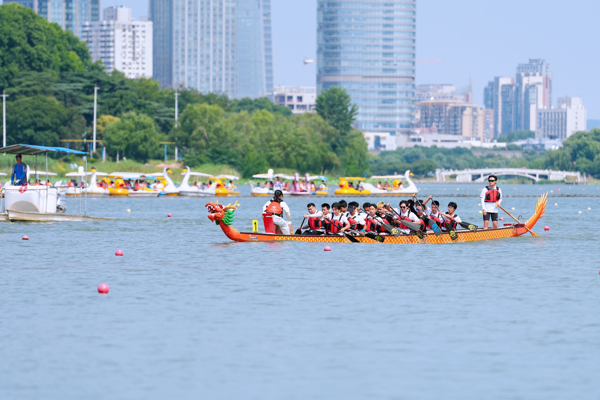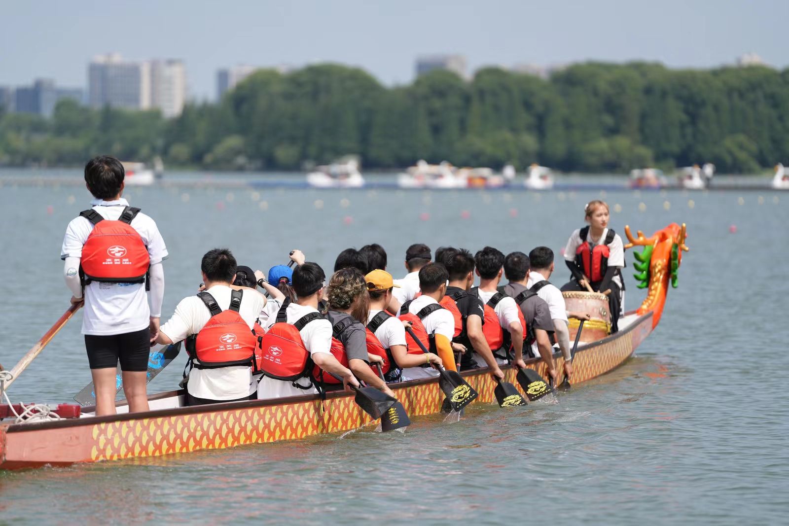 On June 10, 2024, Nanjing University's Dragon Boat Team invited international students and faculty from countries including the United States, Colombia, and Australia to participate in a dragon boat race at Xuanwu Lake. This event provided a unique opportunity for the participants to experience the charm of dragon boat racing and to immerse themselves in the rich cultural atmosphere of the Dragon Boat Festival.