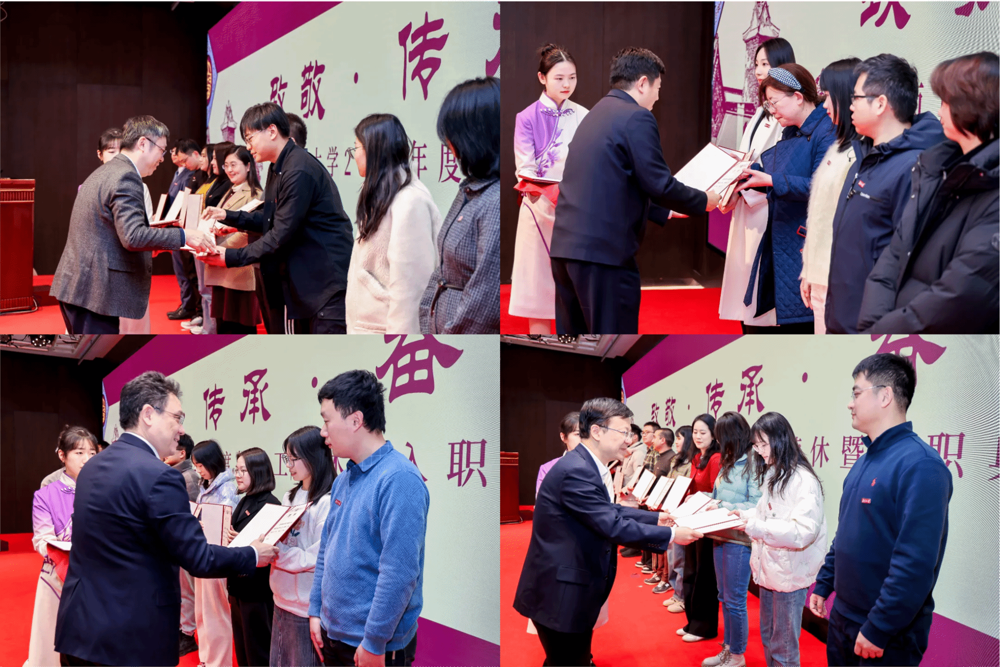 Vice-presidents Lu Yanqing, Lu Xiancai, Suo Wenbin and Assistant President Li Bin awarded the certificate of appointment to new teachers and welcome them to join NJU. Vice-president Wang Zhenlin chaired the ceremony.