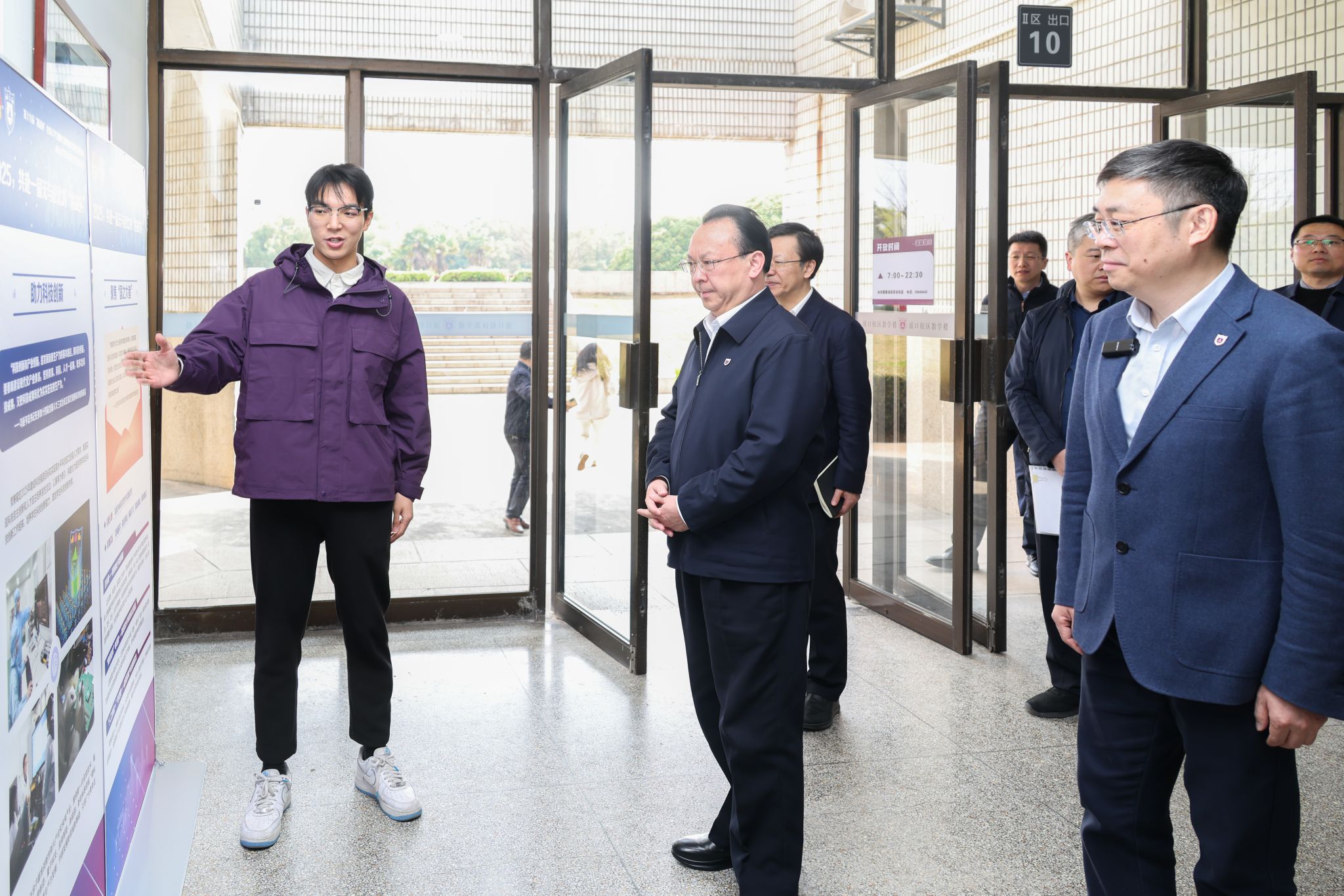 After the lecture, Tan Tieniu visited various places on Pukou Campus, including the Yuhui Building, the Zuo Dijian Sports Hall,the dormitories 17-21 and the No. 15 Student Canteen. During his visits, Tan Tieniu emphasized that responsible persons from relevant departments should truly understand students' thoughts and concerns and promptly solve urgent issues like commuting difficulties by optimizing bus routes and accelerating subway line construction, creating a comfortable, secure, and joyful campus environment at Pukou Campus, enhancing students' sense of belonging and happiness.